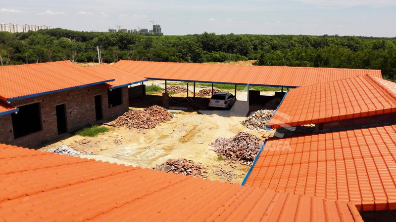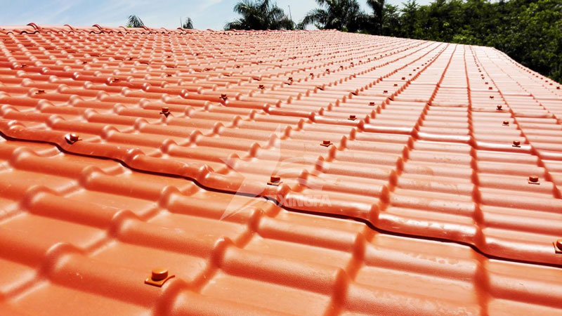 合成樹脂瓦與鋼板在縱向搭接時(shí),最小必須有200mm的重疊,并貼置兩條止水帶。這樣的設(shè)計(jì)不僅增強(qiáng)了結(jié)構(gòu)的牢固性,還有效預(yù)防了漏水問題。